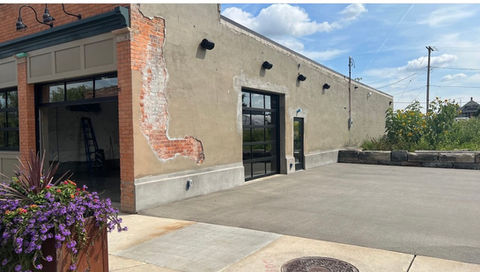 Large Glass Overhead doors Leading directly out to the front of the building & the patio